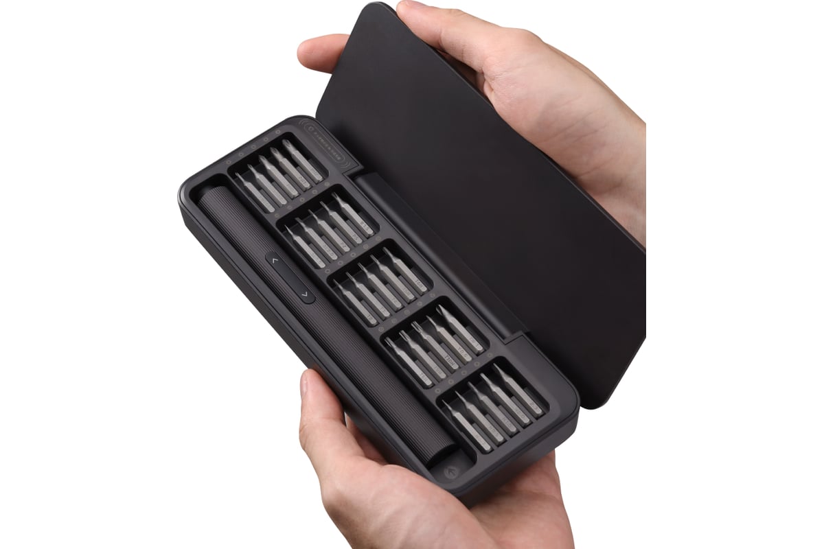 Аккумуляторная отвертка HOTO Electric Screwdriver Set с набором бит, 5В QWLSD010 представляет собой набор из 24 прецизионных бит для точных работ С4 и отвертку из алюминиевого сплава.