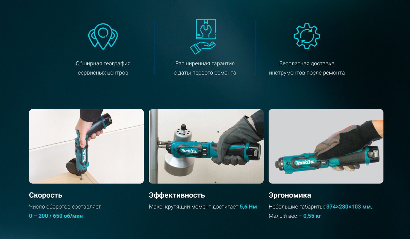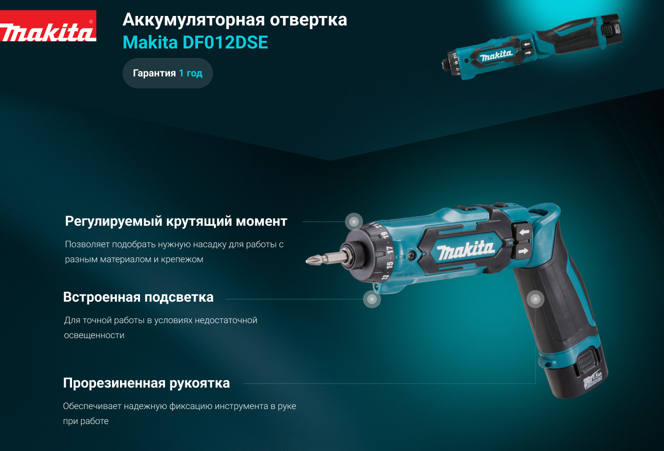 - Чемодан - для удобства хранения и транспортировки аккумуляторной отвертки Makita DF012DSE.