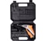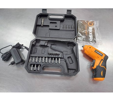 Аккумуляторная отвертка предлагается в пластиковом кейсе в комплекте с 18 битами, адаптером-удлинителем для бит, сетевым адаптером для зарядки. Такая комплектация упростит подбор инструмента для каждого конкретного метиза, сократит время работ по установке или удалению крепежа в больших объемах.