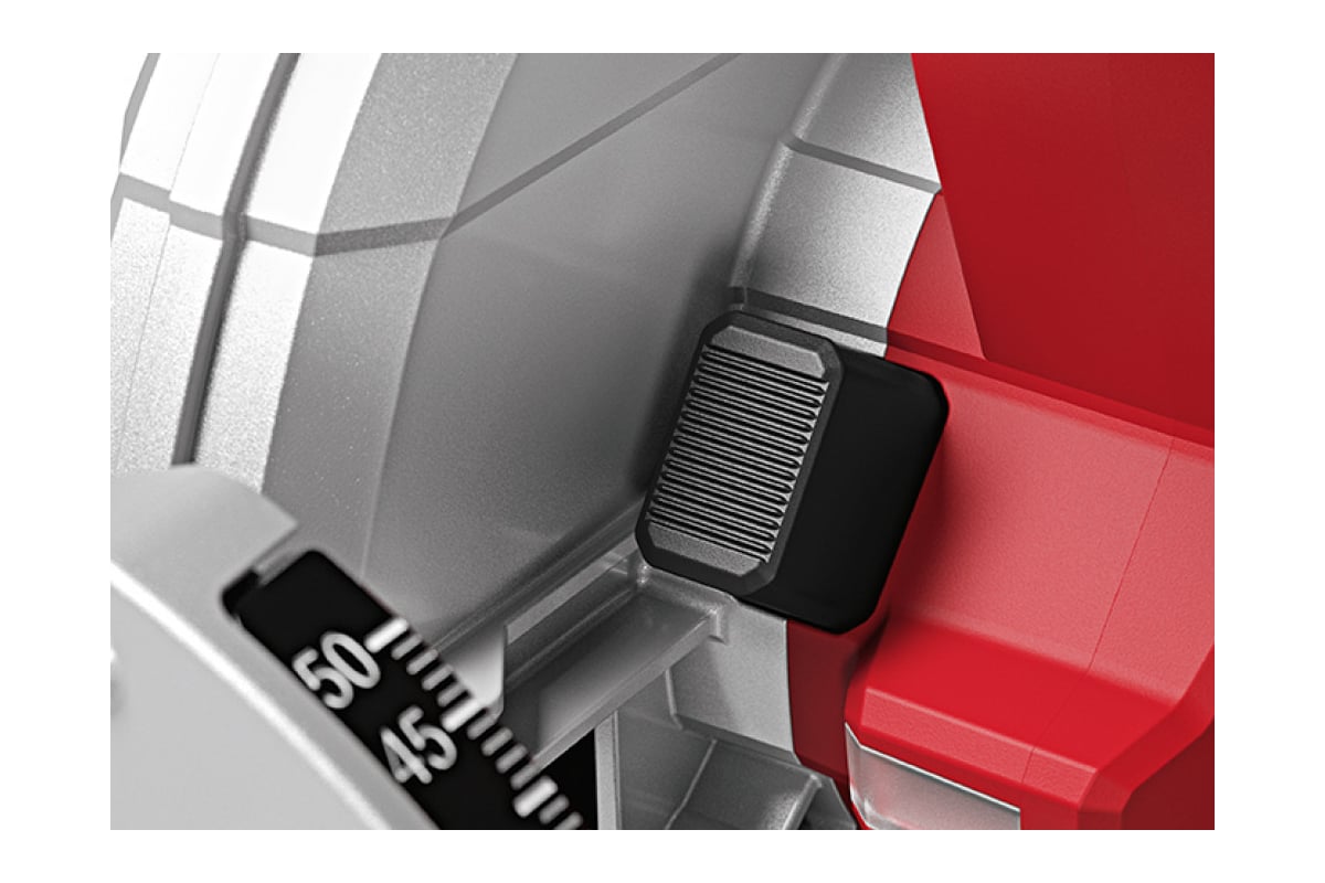 - Поворотный элемент с двойной фиксацией предотвращает заклинивание пильного полотна при резке под углом и опасность отдачи