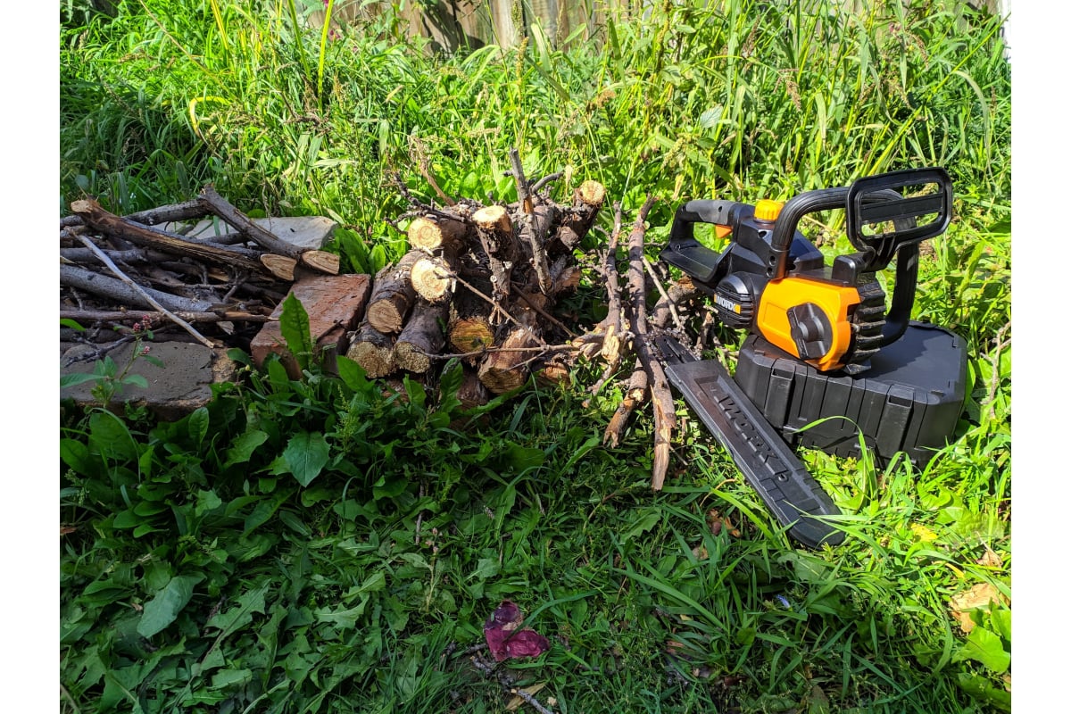 Свои функции выполняет хорошо, спилит среднее дерево не говоря о ветках , быстро садится батарея , если работа более 20 мин надо иметь вторую желательно большей емкости.