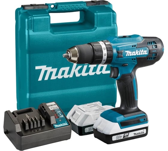 Аккумуляторная ударная дрель-шуруповерт Makita 18 В, 1400 об/мин, 21000 уд/мин, с 2 АКБ 2 Ач и ЗУ, в кейсе, HP488D006