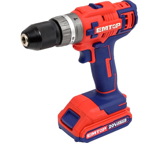 Аккумуляторная ударная дрель-шуруповерт emtop 20 В, скорость холостого хода: 0-400/0-1500 об/мин, максимальная частота ударов: 22500 об/мин ECIDL6200128