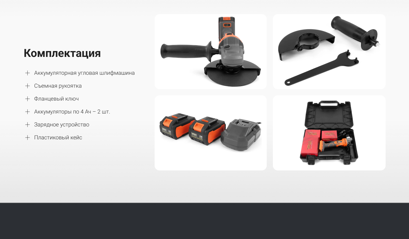 - Аккумуляторная угловая шлифмашина - 1 шт.