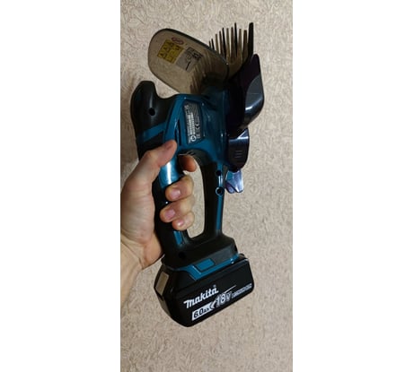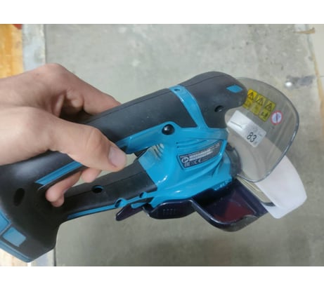 Работают от чёрно-серого аккумулятора деко на 20 вольт. Но работать будет не так шустро и по времени меньше по сравнению с оригинальными акб lxt. Предохранитель нажимается в обе стороны - удобно работать обеими руками. Собраны хорошо. Пластик качественный. Резина приятная. В защите руки есть отверстие для хранения в подвешенном виде.