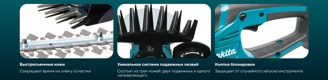 В эксплуатации с лета 2023 года. Начну с того что обращу внимание на сложности установки ножей. Нужно подгонять рабочий эксцентрик под установочные кольца в ножах. Это морока, но все приходит с опытом. В видео к данному комментарию (ссылка в самом конце) я наглядно показываю весь процесс установки ножей и закрытия их защитной крышкой. Ножи для кустов - это обработка листвы. И больше подходит для садов с ландшафтным дизайном, чем для обработки плодово-ягодных кустов.Но вот если у вас на участке растут туи, пихты, декоративные ели… Иными словами декоративные культуры с плотной листвой по всему стеблю, то кусторез необходим. Он этими ножами хорошо придает форму и эстетика форм получается на 5+. Ножи для травы. Кусторез с ножами для травы, это уже для точечной обработки локальных участков газона. Если вы следите за своим газоном на участке, то желательно иметь и триммер и газонокосилку и кусторез с ножами для травы. Триммер - для предварительной обработки газона. Газонокосилка - для окончательной обработки. Кусторез с ножами для травы - для финишной обработки. Это там где ножи газонокосилки не смогут пройти физически, это вдоль забора, вокруг высаженных деревьев и т.д. Вот там уже в ручном режиме, нагибается и аккуратно выкашиваем остатки на нужной высоте. Благо на кусторезе можно настроить высоте реза (15,20,25 мм.) и не будет перепадов по высотам травы с основным газоном. Также на участке бывают кочки, ямки. там где нет желание работать триммером. ибо им в таких участках можно «перекосить» лишнего, прям до земли, и по факту этого на участке образуется проплешина. Скажем так: «Когда нам надо выкосить именно три травинки» - он нам нужен. Да, кусторез штука специфическая и узкопрофильная. Покупается для конкретных задача по садовому участку. И перед покупкой клиент должен понимать что он от него хочет. Чтобы потом не возмущать от потраченных денег. Несколько советов по эксплуатации: 1. После работы в саду, продуваю сжатым воздухом ножи, у кого нет компресса, можно осуществить чистку в ручную. Зачем? Попадает и земля и песок и остатки листвы, что является приличным абразивом для ножей, что может в дальнейшем привезти к их износу. 2. Промасливаю ножи после каждой чистки. Обычным машинным маслом. Заливая в масленку и аккуратно промасливаю соединения. Потом включаю холостой ход, излишки масла уходят. После протираю сухой ветошью чтобы в последствии не испачкаться. И тогда у вас при работе с газоном или кустами не будет на листве остатков масла. 3. В рабочую часть где эксцентрик, наносить констистентную смазку, типа Лито-24, графитная смазка и аналоги. Конечно при смене ножей можно испачкаться, но зато механизм будет долго работать, а покупать новую все таки накладно… 4. Компании Макита подумать над тем, чтобы как то упростит монтаж и замену ножей. Слишком мудрено и муторно. Как у других инструментах применить Click-систему, где Щелк-и готово. Записал на эту тему видео: https://vk.com/id223234553?z=video223234553_456242067%2Fpl_223234553_-2