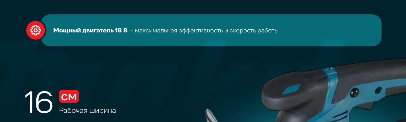 - Аккумуляторная технология избавляет оператора от необходимости следить за шнуром питания