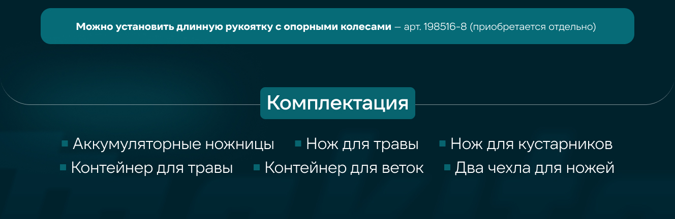 Достоинства: 1. Возможность обработки не только кустов, но и травы. 2. Защитные чехлы для транспортировки и хранения не используемых ножей. 3. Легкость конструкции, вес в своре не более 2 кг. 4. Хорошо сбалансирован, удобный хват, прорезинивая ручка. 5. Покупался в комплектации Z, не переплачивали за аккумулятор и зарядное устройство. 6. На ножах для травы есть шкала «высоты покоса», 15, 20, 25 мм.