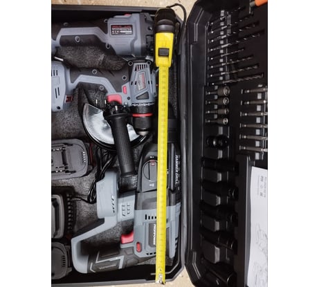 Кейс неудобный, отделений под каждый инструмент нет, уверенно места хватает для двух устройств, трех аккумуляторов и зарядки иначе каждый раз тетрис. Почти все расходные материалы на выброс. 2-3 аккумулятора придется докупить. Аккумуляторы распространенные (типоразмер как макита) но я купил этого же производителя. У болгарки нет кнопки блокировки случайного включения. На шуруповерте регулятор усилия очень невнятный, явно не рассчитан для мелких работ, ну и для больших усилий наверное тоже не рассчитан, не всякий саморез загонит в сосну.