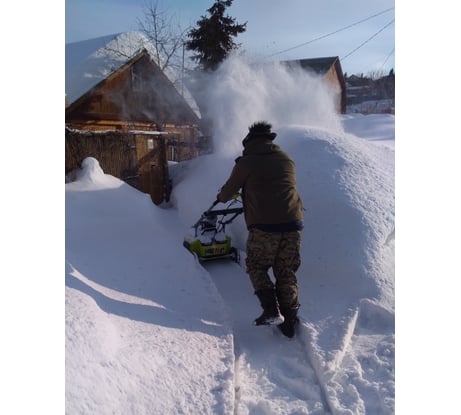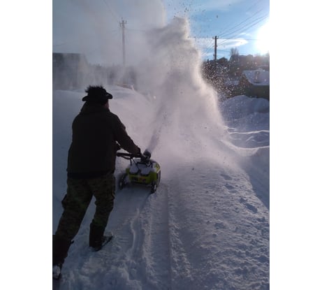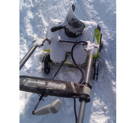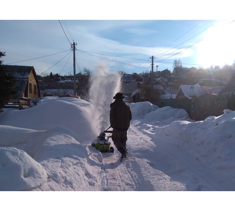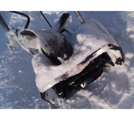 После чистки мокрого снега примерз рычаг поворота лотка. Плохо защищено место установки аккумулятора. При глубоком снеге приходится захватывать снег половинкой лопасти, тогда мощности хватает. Глубокий и слежавшийся снег не потянет. И конечно, этот агрегат не для мужских рук, запускной механизм очень нежный. Аккумуяторная косилка Ryobl c таким же запуском сломалась сразу же, попав в мужские руки.