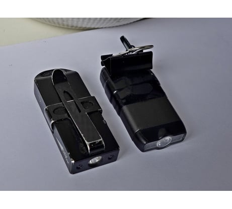 До этого фонаря пользовался несколько лет Scorpion 80 CRI . Для меня это был идеальный фонарь на каждый день. Данная модель - это наполовину урезанный ранний Скорпион. Отсутствует клипса. Поэтому нет возможности носить на ремне и пристегивать на козырек бейсболки во время работы. Убрали самый экономный режим работы белого света. Убрали ультрофиолет. Включение происходит с задержкой, т.е. просто ткнуть в кнопку не получится. Для включения ее надо удерживать секунду. Из-за урезания режимов, режимы переключаются в последовательности средний белый, сильный белый, красный. Чтобы можно было закрепить на козырьке , я прикрутил изолентой канцелярский зажим. Когда старый фонарик совсем кончится, постараюсь с него приделать клипсу к этому.