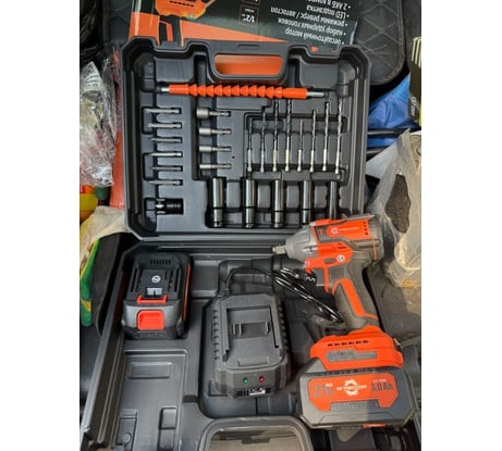 Мощный и удобный инструмент. Хватает на всё – от сборки мебели до ремонта авто. Приятно удивлен комплектацией: два АКБ и куча насадок в кейсе. Работает без нареканий, покупкой доволен.
