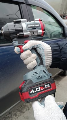 Почти не использовал, чисто в качестве теста решил открутить гайки на колесе (заворачивали динамометрическим ключом 120 ньютонов) - даже не икнул, схавал всё как миленький. Ато некоторые пугали, что не может даже гайки на колесе отвернуть. С ударной головкой и ударным же удлиннителем отвернул кажется даже без ударов. Мощи хватает в общем.