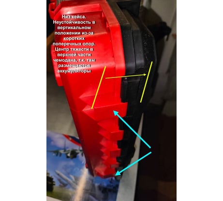 Долго подбирал гайковёрт, просматривая отзывы: по надёжности, достаточной для личного гаража мощности, не менее 18 Вольт, полной комплектации и разумной цене. Достойный вариант на "отлично". При нечастой эксплуатации ёмкости 2,0 А-час мне хватает. Однозначно рассчитывал использовать для отворачивания, наживления с последующим затягиванием и контролем динамометрическим ключом. Замечание производителю: Кейс классный и вместительный, НО не продуман до конца! Кейс в вертикальном состоянии очень неустойчив, т.к. опоры ("ножки", обозначено стрелкой) подрезаны. См.последний снимок, ширина опоры отмечена жёлтым маркером.Небольшой уклон и кейс падает (центр тяжести расположен в верхней части).