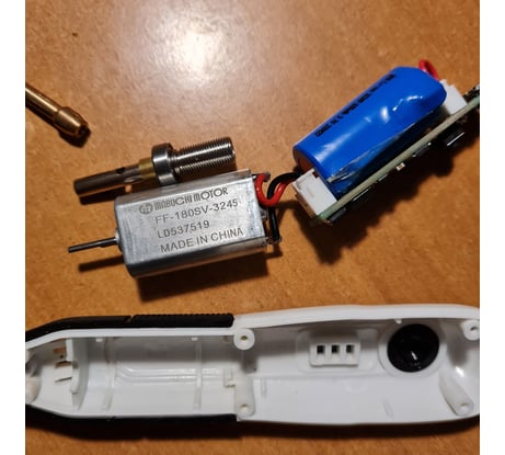 Отказал примерно через 40-50 часов работы. Вскрытие показало, что полностью износились щётки двигателя - стальные пружинки, которые прижимаются к коллектору ротора и медные пластины ротора тоже имели сильный износ.