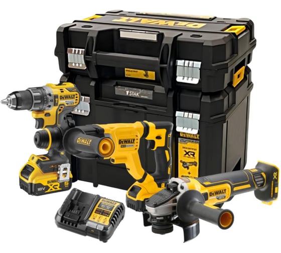 Комплектация:Дрель-шуруповерт DCD791 - 1 шт.; УШМ DCG405 - 1 шт.; Перфоратор DCH263 - 1 шт.; АКБ 5 Ач - 2 шт.; Зарядное устройство - 1 шт.; Кейс TSTAK - 2 шт.