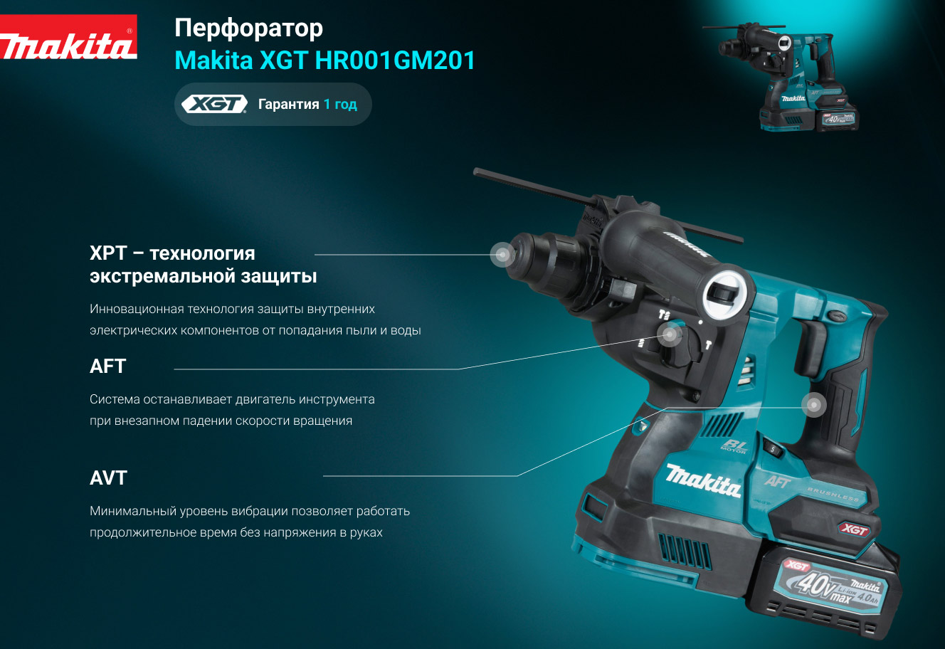 Аккумуляторный перфоратор Makita XGT HR001GM201 199375