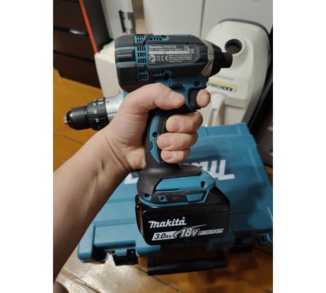 Уволился из мастерской и остро стал вопрос о покупке ручного инструмента для дома. Долго выбирал шуруповерт, не мог определится. Но посчитал, прикинул, взвесил все за и против и пришел к выводу, что золотой серединой для меня будет Аккумуляторная дрель-шуруповерт Makita DDF458RFE. Инструмент отличный, мощный, но БОЛЬШОЙ и достаточно ТЯЖЕЛЫЙ. Скорее для профессионального использования нежели для бытового. Кейс вместительный, и в нем есть свободная полость для еще одного шуруповерта. И на дне полости обнаружил миниатюрную иконку импакта))) Вселенная не терпит пустоты! И вот заполнил ее Аккумуляторным шуруповертом Makita DTD152Z. Прикольный аппарат, и по очень демократичной цене, ввиду бедной комплектации без аккумуляторов и зарядника, только тушка. Но все это было в Makita DDF458RFE. Получился достаточно хороший, функциональный симбиоз. Там где нужна мощь сверления один инструмент, где необходима легкость и шустрость то Makita DTD152Z. Он маленький, удобный, шустрый, мощный и ИМПАКТ. В небольшой кисти сидит удобно. Быстрая смена оснастки. Шурупы, глухари, болты и гайки вворачивает лихо. В действительности стал практичным домашним помощником. Отлично показал себя и при сборке мебели, но надо приноровиться, у него нет регулировки степени затяжки, легко провернуть конфирмат. В общем я доволен. Дела спорятся шурупы крутятся, картины и полки висят, доски пола больше не скрипят. Однозначно рекомендую.