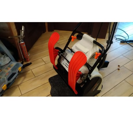 Сложносочленённая зачем-то разборная ручка неудобно низкая и для своих целей (толкание девайса сквозь снег) реально очень, очень хлипкая; думаю, со временем сломается. Ручка ещё и не прямая, а имеет загиб вверх, благодаря которому и вовсе стремится не передавать толкательное усилие на девайс, а складываться по своим хилым разборным сочленениям подобно книжке. Эта ручка - самый раздражающий минус девайса. Не знаю, что с ней делать. Ну а дальше по мелочи: штатные колёсики хороши разве что для уборки мраморных полов, а для грунта и снега малопригодны; также со временем под весом девайса колёсики (смешно, да?) теряют округлость; но после замены (см. фото) колёсиков на купленные в инете занедорого лыжи для зимних самокатов с проходимостью у девайса всё стало просто великолепно. Такой апгрейд настоятельно рекомендую. Ещё раздражавший момент: штатная нижняя снегоподгребальная пластиковая планка-"нож" (чёрная, хорошо видна на четвёртом фото) хороша для тех же мраморных полов, по которым наверное классно скользила бы, но на реальном снегу эта пластиковая планка имеет конструктивный и обусловленный геометрией конструкции недостаток - свойство к непрестанному "зарыванию" в грунт. Да и вообще делать из пластика такую механически нагруженную деталь, которая по самому своему назначению вечно обо всё бьётся, скребёт, и от этого портится - сомнительное решение. Вылечилось - см. фото - добавлением снизу к этой планке самопального металлического "ножа", сделанного из старого алюминиевого правИла. Этот же металлический нож - кстати сделанный мною легкосменным - также позволил компенсировать тот факт, что клиренс девайса при его установке на лыжи увеличился. В итоге из неустранённых проблем девайса осталась только ручка. Но после того, как девайс перестал на каждом шагу зарываться планкой в грунт, и хлипкость ручки стала мешать меньше. Буду рад, если мой опыт кому-нибудь пригодится.