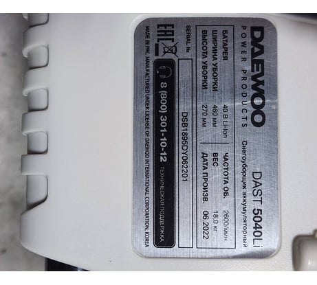 Аккумуляторный снегоуборщик DAEWOO DAST 5040Li необходим для очистки парковок, придомовых территорий, подъездных путей и дорожек.