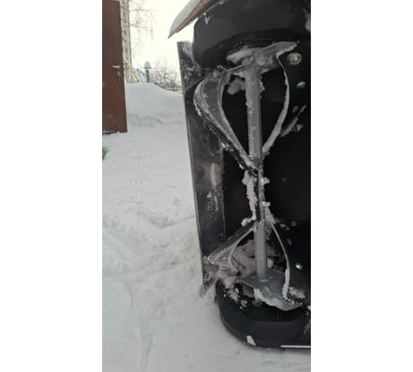 Снегоочиститель ножом пытается забуриться вглубь. Возможно на асфальте это самое то, но на даче, где совсем всё другое, такой принцип не канает. Колесики маленькие, по снегу не желают ехать! Ещё слабые места крепления сочленений ручки. Барашки всё время норовят раскрутиться. Пришлось поработать инструментом и с помощью болтов с гайками и дополнительных планок ручка стало единым целым с снегоуборщиком и не болтается.