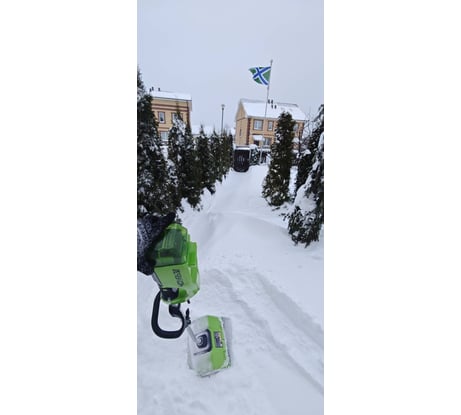 Стоит своих денег, аналоги намного слабее и хуже по качеству. Главное использовать аккумулятор не менее 5 ампер, потому как с меньшей мощностью быстро разряжается и слабее кидает. На видео убираю слежавшийся сугроб.