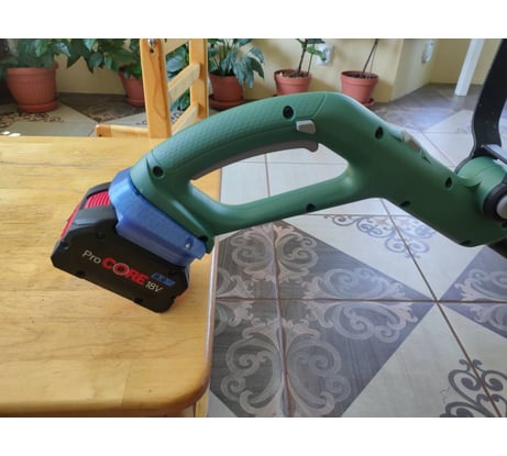Покупался аппарат для пожилых родителей, чтоб не мучались с бензиновым триммером, для небольших участков на даче. Конечно большие участики и густую траву он устанет косить, а для мелкой не густой газонной травки в самый раз. Цена с АКБ конечно заоблачная совсем. Я вообще сам имею Макиту линейки LXT. Поэтому брал этот триммер без АКБ, и переделал под свои АКБ. С Китая заказал пластиковые штуковины для АКБ LXT и сделал этот Бош под Макиту. На фото всё видно, можете так же сделать чтоб не переплачивать за АКБ. Нарисовал схему чтоб он у вас работал, т.к. если подав просто + и - он работать не будет. Траву счищать с него проблема. Макита же стоит от 6? без АКБ, это конечно вообще цена заоблачная.