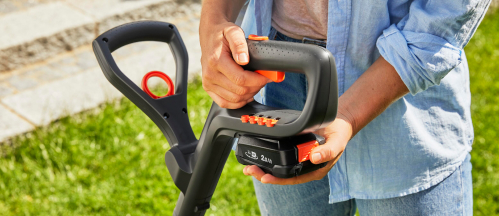 - Быстрый старт Новый триммер не нужно собирать: просто установите аккумулятор и начинайте работу