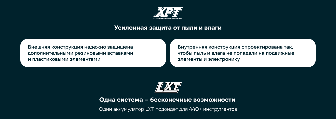 Хорошая эргономика, высокие мощность и производительность, стильный дизайн, небольшой вес, долгая работа от аккумулятора (идет в комплекте, что крайне удобно), яркий светодиод подсветки, большое количество режимов для разных типов работ, большая сфера применения.