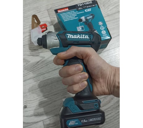 Занимаемся монтажем ОПС. Имеется линейка желтого инструмента. О Маките как то даже не задумывался. На очередном промышленном объекте пришлось много крепить в сэндвич саморезов. Образуется много мелкой стружки, и тут задумался, как бы бесщеточный импакт не наглотался ее и на магнитный якорь это все не собрал. Решено было обзавестись дополнительно щеточным импактом, недорогим, на 12В , чтобы вес и габариты небольшие были при работе на высоте. Мощность при этом не нужна большая. Выбор по цене пал на ТД110. Купил его в паре с DF333DWAE , т.к. на тот момент по акции было дешевле купить DF333DWAE + TD110DZ , чем TD110DWAE. Так еще бонусом простой шурик лежит про запас. По работе им что могу сказать: Эргономика, баланс и вес отличные. Да в нем нет бесщеточного мотора, различных электронных режимов, невысокая мощность. НО! При работе с небольшим крепежом - он более удобен и прогнозируем, не срывает шляпки саморезов, момент заятжки лучше контролируется нажатием кнопки - чем его более мощные и навороченные желтые конкуренты. До этого к маките, тем более 12В, относился скептически, но тут поработав, понял для себя, что это инструмент для деликатных работ, где как раз излишняя дурь во вред будет, а так же удобно контролировать его во время работы. Если нужно что то посерьезнее, сделать, тоже сможет закрутить, пусть и не так быстро. Если кто то рассматривает его в качестве первого импакта для небольших работ - отличный вариант. Научитесь понимать суть инструмента(импактов), он как автомобиль , у которого есть руль колеса и педали, а большего и не требуется. Докупил к нему еще аккумулятор на 4Ач. номер заказа 2309-223868-24134