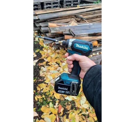 Makita - как много в этом слове для сердца мастера слилось... Здесь качество и мощь скрываются в деталях... И, да, наверно лучше будет стих заменить работой... Работой той, что делает Makita в руках любого человека... Для строительства своего каркасного дома купил аккумуляторный ударный шуруповёрт Makita DTD154Z. Крутить саморезов надо было много, а обычным шуруповёртом у меня ничего не получалось сделать, саморезы 5х90 мм. приходилось доворачивать отвёрткой. С ударным шуруповёртом работа пошла легче и быстрее, оказалось, что уже не надо прикладывать столько усилий, чтобы удержать шуруповёрт в руках, чтобы не повредить крепёж и запястье (выкручивание запястья достаточно неприятное ощущение, после пары раз, таким инструментом уже не хочется работать). С ударным шуруповёртом всё просто, легкое нажатие и саморез 5х90 мм. практически без усилия заворачивается в доски стягивая их. После того, как попробовал закручивать им, у меня возник только один вопрос к себе, почему я не купил его раньше? Но, наверное надо было помучаться с простым шуруповёртом, чтобы понять эту колоссальную разницу. Раньше я отвёрткой быстрее заворачивал саморез чем шуруповёртом, теперь всё поменялось, нужен только DTD154 и несколько тысяч саморезов, кстати для небольшого дома мне потребовалось закрутить около 3 тысяч саморезов, считаю что обкатку шуруповёрт прошёл. Ещё предстоит много работы, одним из самых незаменимых инструментов по праву считаю ударный шуруповёрт. В работе понравился бесщёточный двигатель, который эффективней и производительнее, при этом одного заряда аккумулятора хватает надолго, сперва даже не понимал, как это не надо заряжать после нескольких дней активной работы. Четыре режима работы позволяют подобрать необходимый для конкретных задач, у меня получилось сразу выставить нужный, таким и работаю, всё зависит от силы нажатия курка, чем сильнее тем больше обороты и соответственно крутящий момент. Ещё понравился компактный размер и его удобно держать в руках. Ведь, можно долго излагать словами характеристики товара. Но, лучше раз всего увидеть в деле! И понять, на что способен этот инструмент!