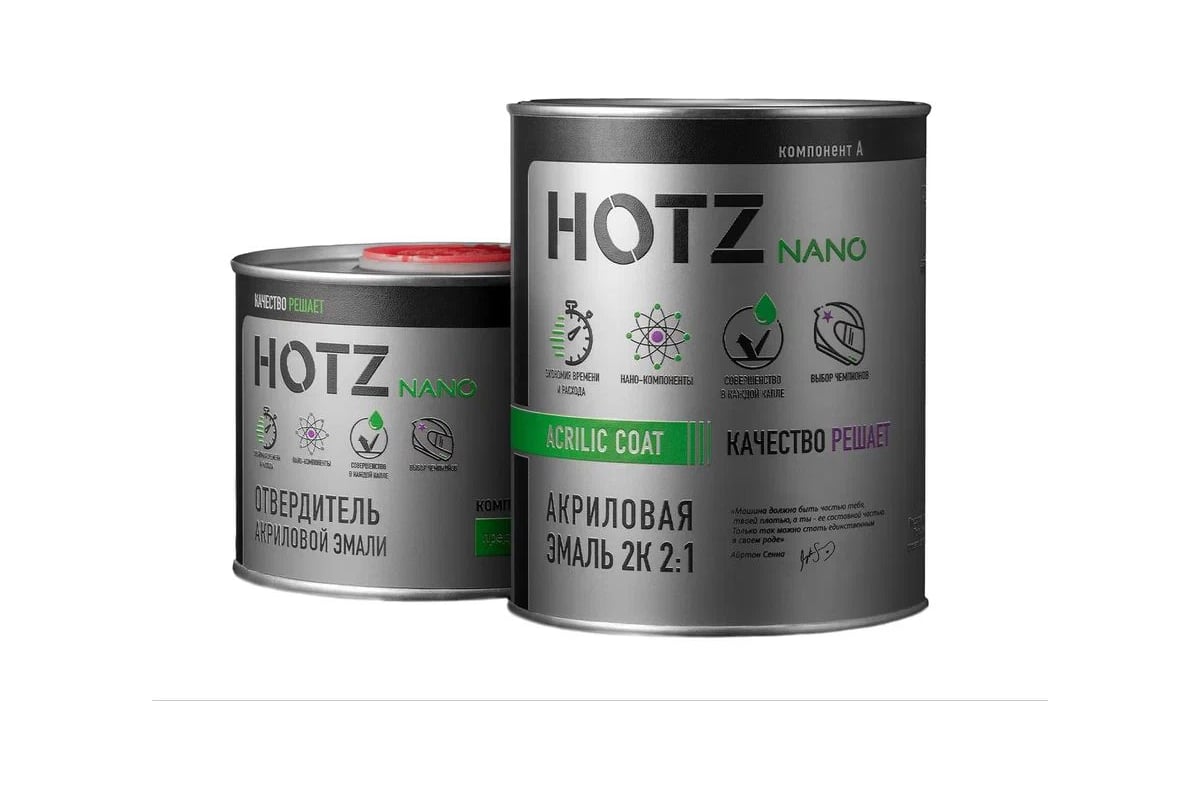 Двухкомпонентная акриловая эмаль HOTZ – автоэмаль с прекрасным уровнем глянца и стабильностью цвета, высокой атмосферной и химической стойкостью. Может быть использована для точечного, локального и полного ремонта существующих заводских и ремонтных покрытий. Применима к грунту акриловому, а также к очищенным и отшлифованным ремонтным и заводским покрытиям. Обладает отличным розливом, оптимальным временем сушки.