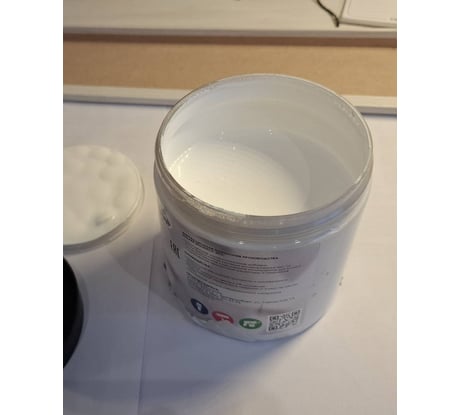 Даже в описании вранье. Латексная, не акриловая. Ложится отвратительно. Валиком - шагрень, кистью - полосы.Испортил идеально гладкие, загрунтованые МДФ-фасады.Банка заполнена на 3/4.