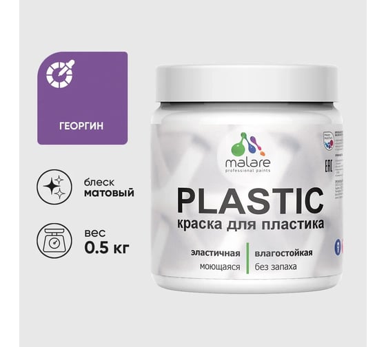 Акриловая краска для пластика MALARE Plastic для ПВХ, для подоконников и откосов, без запаха, матовая, георгин, 0.5 кг 4660504715556