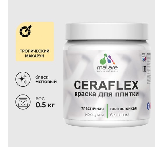 Краска акриловая MALARE Ceraflex для плитки, тропический макарун, матовый, 0.5 кг 4660504712050