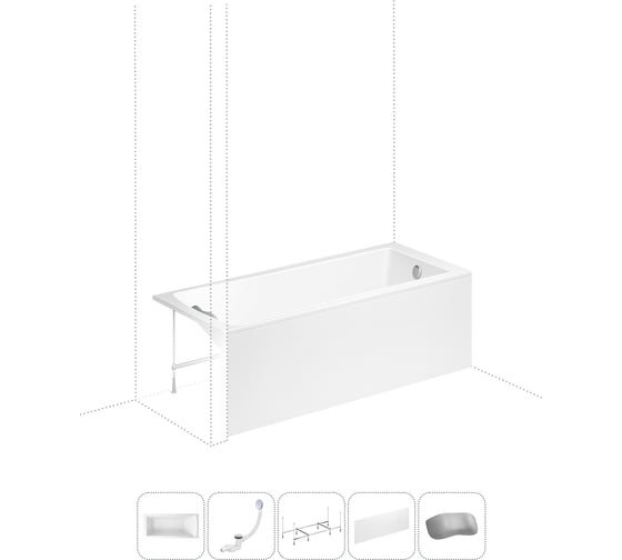 Акриловая ванна Lavinia Boho One в наборе 5 в 1: акриловая ванна, каркас, экран, слив-перелив, подголовник 202011626
