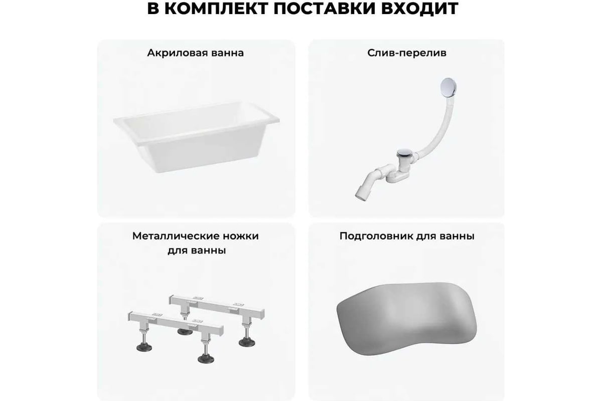 - 1 x ванна из экструдированного акрила ExtrudedPMMA, арт. 231103000 (размер 180*85 см, цвет глянцевый белый);