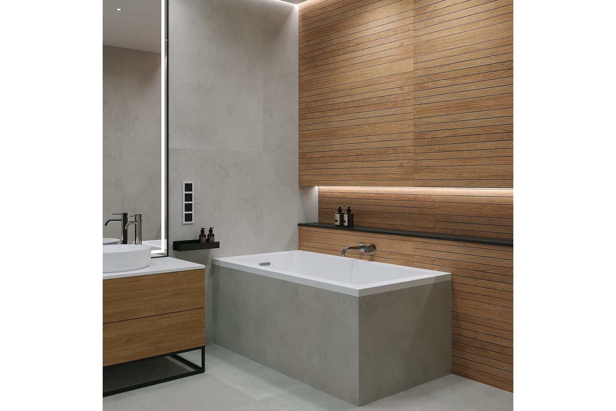 Встраиваемая ванна представлена размерным рядом 15080, 16580 и 180*85 см. Глубокая чаша с эргономичным уклоном спинки и интегрированным переливом обеспечивают удобное погружение в купель и максимальное расслабление при принятии ванны. Модель предусматривает как пристенную установку на регулируемые опоры, так и встраиваемый монтаж в нишу или подиум.