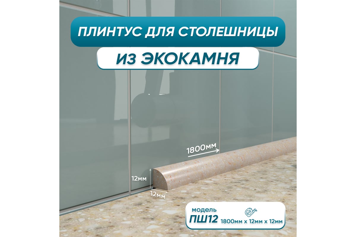 Акриловый плинтус для столешницы BNV ПШ12 180 см, бежевый 4603312129726 подходит для всех типов столешниц, особенно элегантно смотрится на столешницах из искусственного и натурального камня.