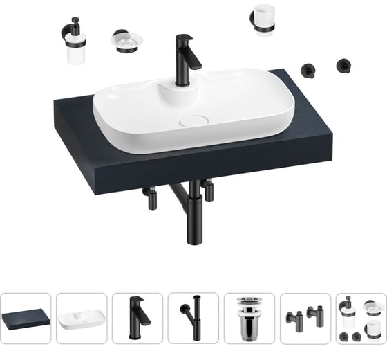 Раковина Wellsee 60 см со столешницей 80 см Croquis 2.0 201008622 в наборе 10 в 1