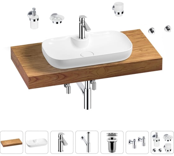 Раковина Wellsee 60 см со столешницей 100 см Croquis 2.0 в наборе 10 в 1 201008691
