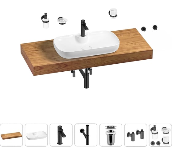 Раковина Wellsee 60 см со столешницей 120 см Croquis 2.0 в наборе 10 в 1 201008757