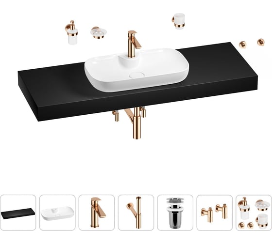 Раковина Wellsee 60 см со столешницей 140 см Croquis 2.0 201008844 в наборе 10 в 1