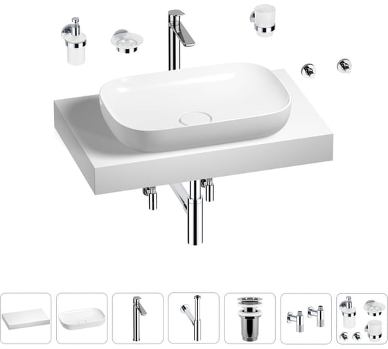 Раковина Wellsee 60 см со столешницей 80 см Croquis 201007971 в наборе 10 в 1