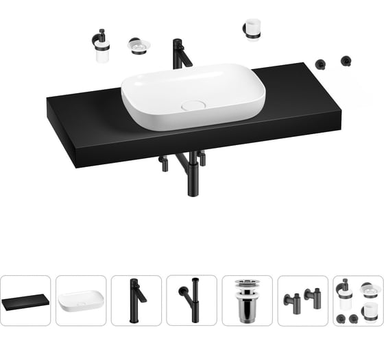 - 1 x cтолешница для раковины, арт. 162023000 (размер 120*50 см, цвет матовый черный)