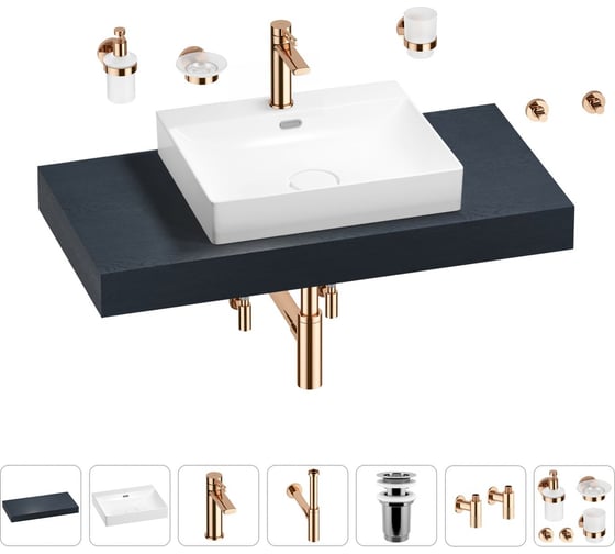 Раковина Wellsee 55 см со столешницей 100 см DeSire в наборе 10 в 1 201013489