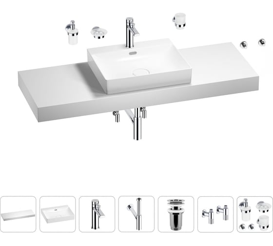 Раковина Wellsee 55 см со столешницей 140 см DeSire в наборе 10 в 1 201013636
