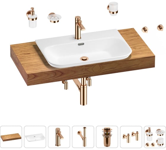 Раковина Wellsee 65 см со столешницей 100 см Eclatant 2.0 201013259 в наборе 10 в 1