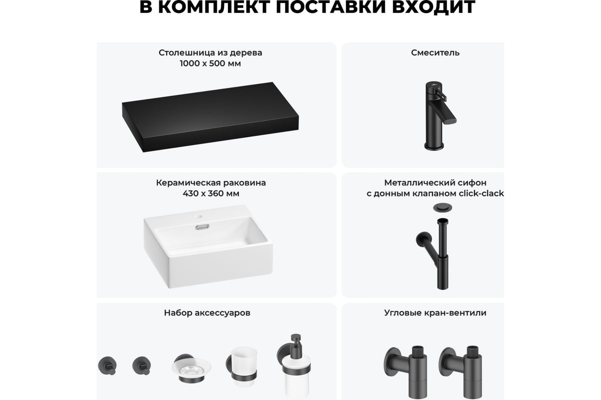 - 1 x cтолешница для раковины, арт. 162022000 (размер 100*50 см, цвет матовый черный)