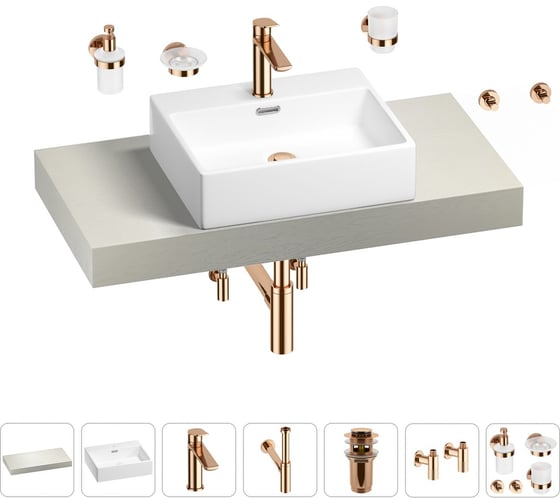 Раковина Wellsee 50 см со столешницей 100 смGraceful Proв наборе 10 в 1 201012454